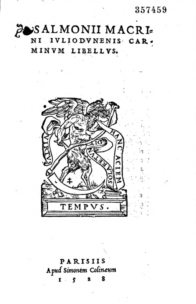 Le Carminum libellus de Jean Salmon Macrin a paru à Paris en 1528 chez Simon de Colines (Simo Colinaeus).